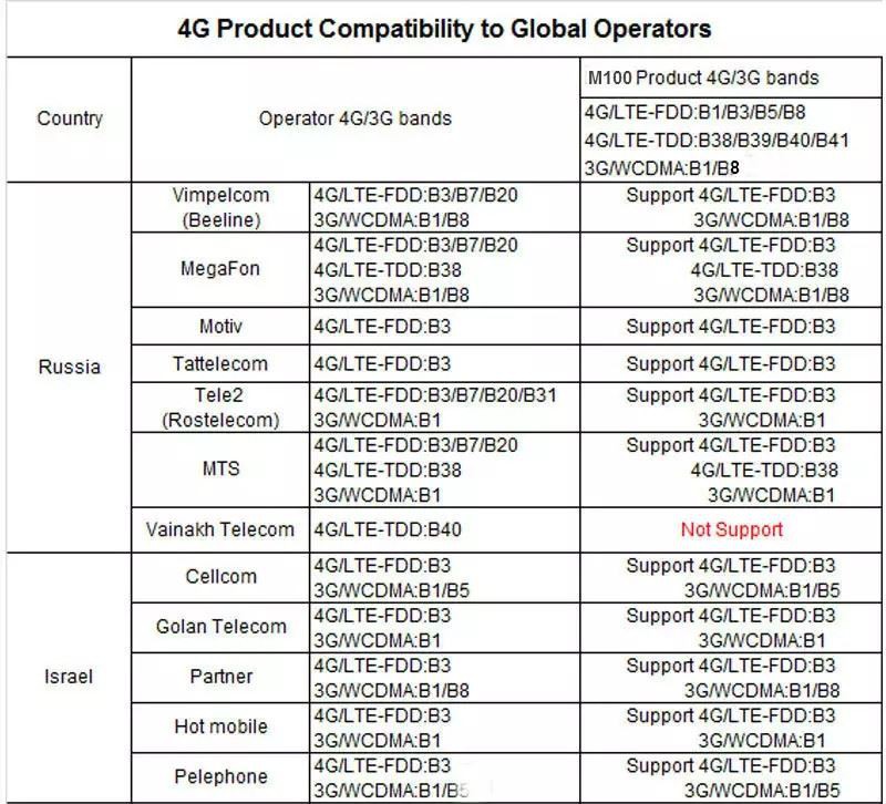 קיימת תמיכה בהתאמה אישית של רצועות תדר 4G עבור מדינות ואזורים שונים.